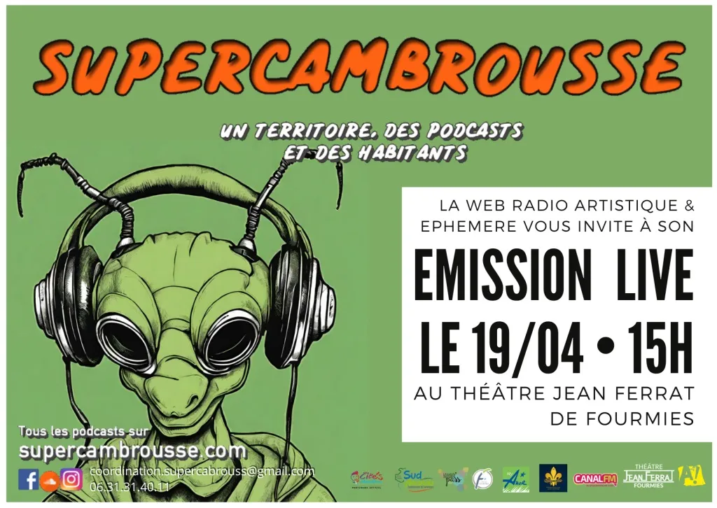 C’est ce vendredi, qu’aura lieu à 15h le grand banquet radiophonique de l’opération « Supercambrousse » ! Cette émission sera réalisée et diffusée en direct sur Internet depuis la scène du théâtre Jean-Ferrat à Fourmies !