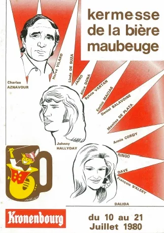 Charles Aznavour, Dalida, Johnny Halliday, Daniel Balavoine, Sylvie Vartan ... en Juillet 1980, Maubeuge a accueilli ce qui se faisait de mieux dans la variété française. C'était à l'époque la 19e édition de la Kermesse de la Bière !