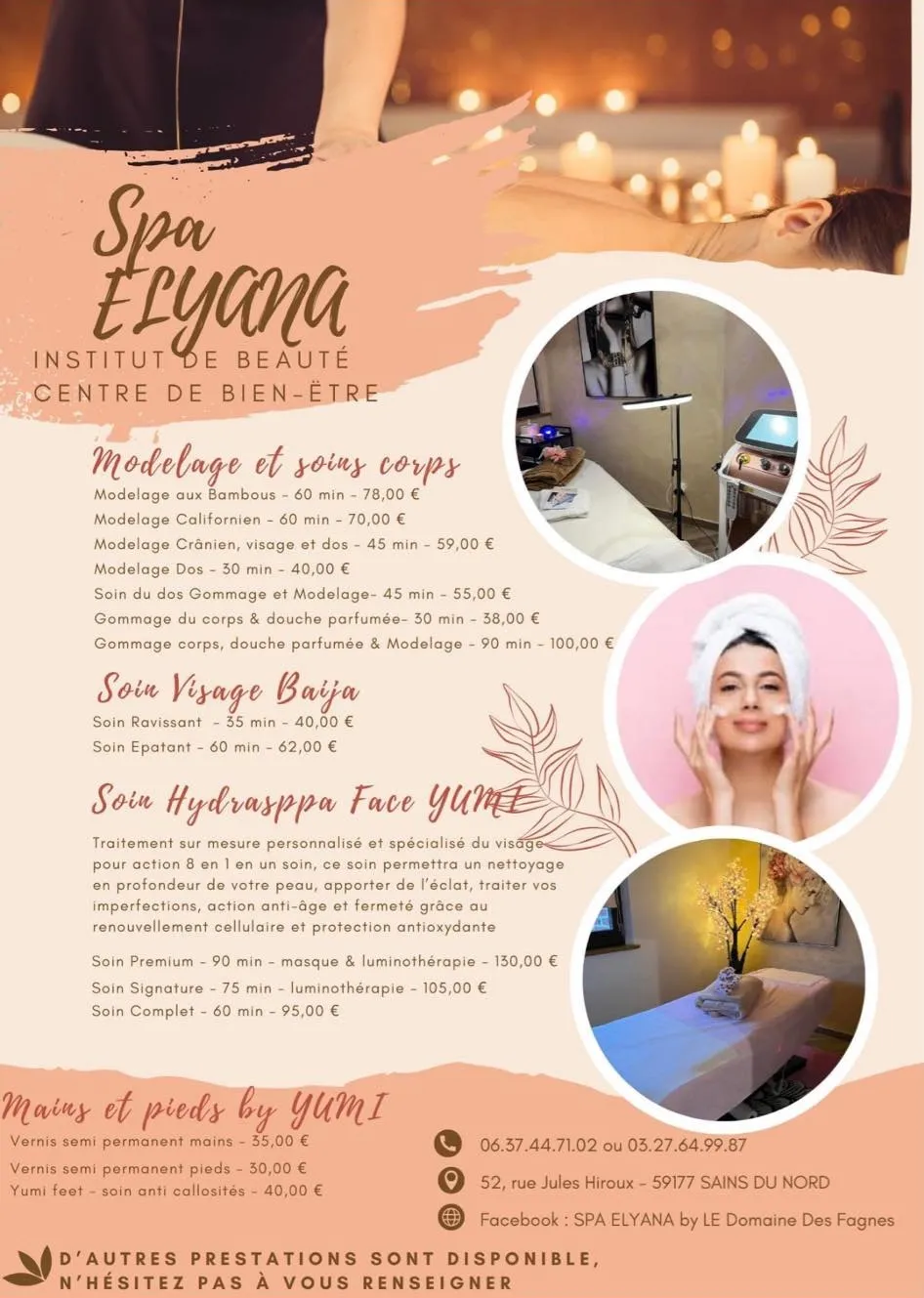 Autres nouveautés, dès le 17 avril, en cabine, vous allez pouvoir vous faire chouchouter avec un modelage complet du corps et autres massages, avec 10 % de remise sur le prix affiché pour les 10 premiers clients !
